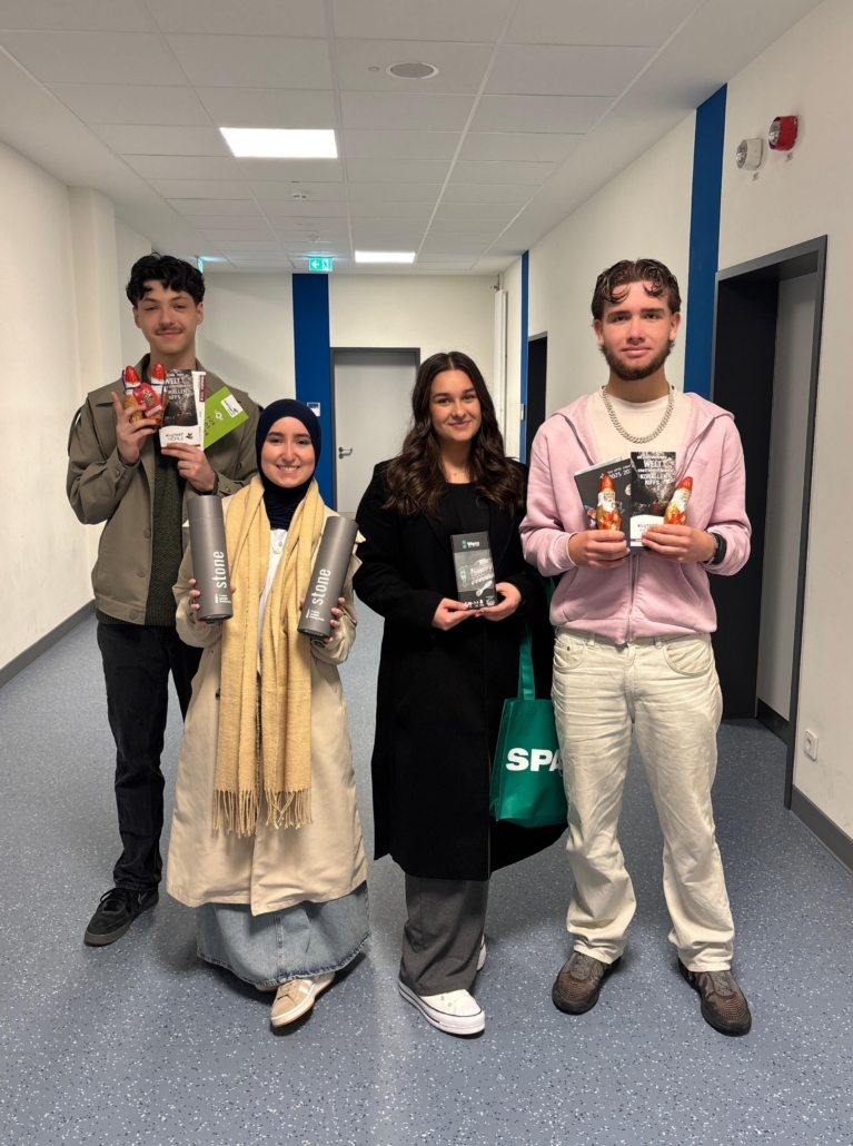 In diesem Jahr gab es erstmals eine Tombola, die auf große Begeisterung stieß. Pro gekauftem Nikolaus erhielten alle teilnehmenden Schülerinnen und Schüler sowie Lehrkräfte ein Los. Die Preise wurden von verschiedenen regionalen Unternehmen bereitgestellt: Familienkarten für das Schwimm In Gevelsberg, Eintrittskarten für die Kluterthöhle, Multitools und Flaschenöffner von Wera, hochwertige Ladegeräte und Trinkflaschen von Dormakaba, Taschen mit Merchandise-Artikeln von Spax, ein Türschloss von Burg Wächter sowie Eintrittskarten für das Teo Otto Theater in Remscheid. Diese vielfältigen Gewinne sorgten für viel Freude und machten die Aktion zu einem besonderen Erlebnis.