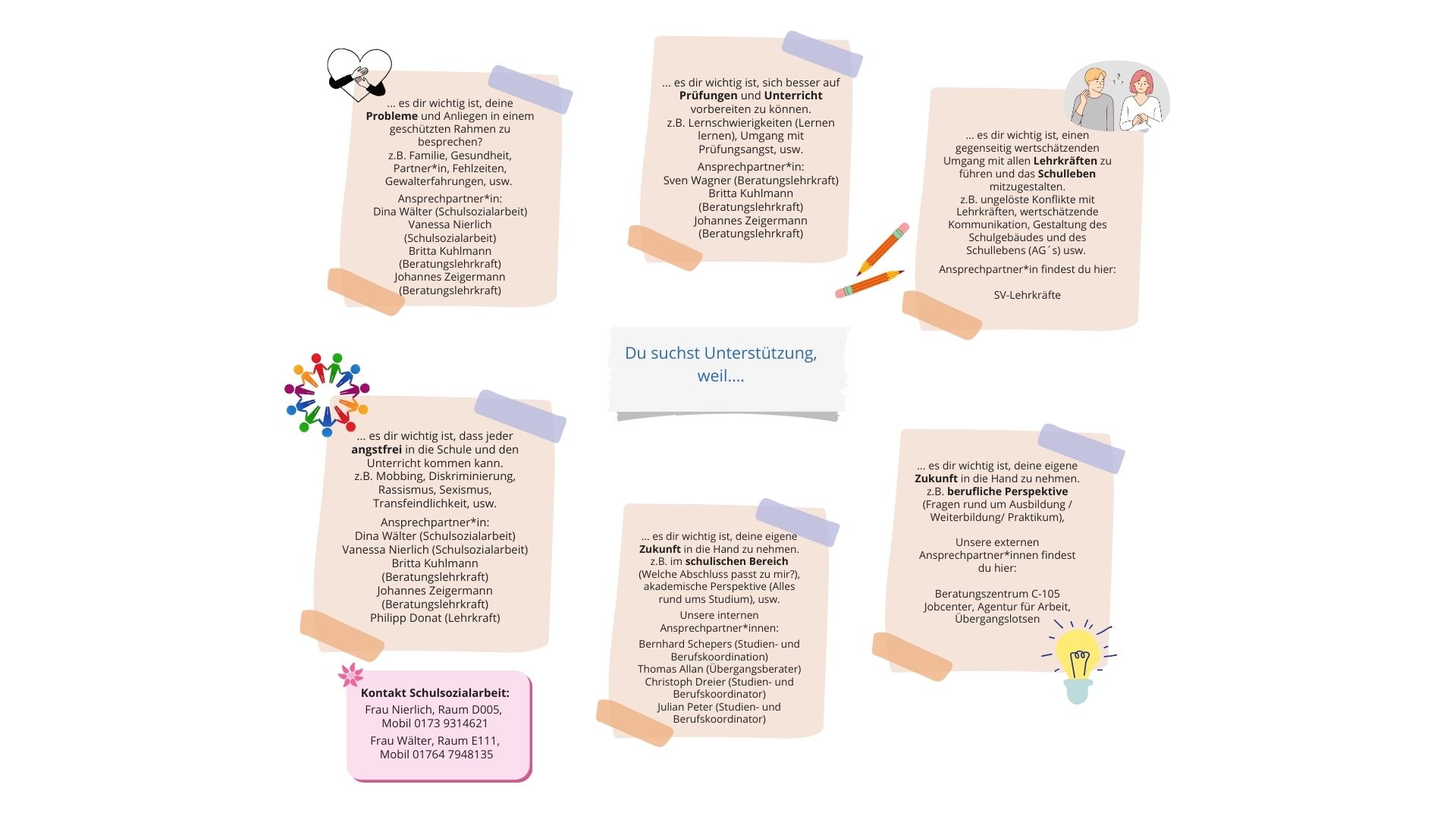 Das Beratungsteam bietet Beratung bei schulischen und außerschulischen Problemen.